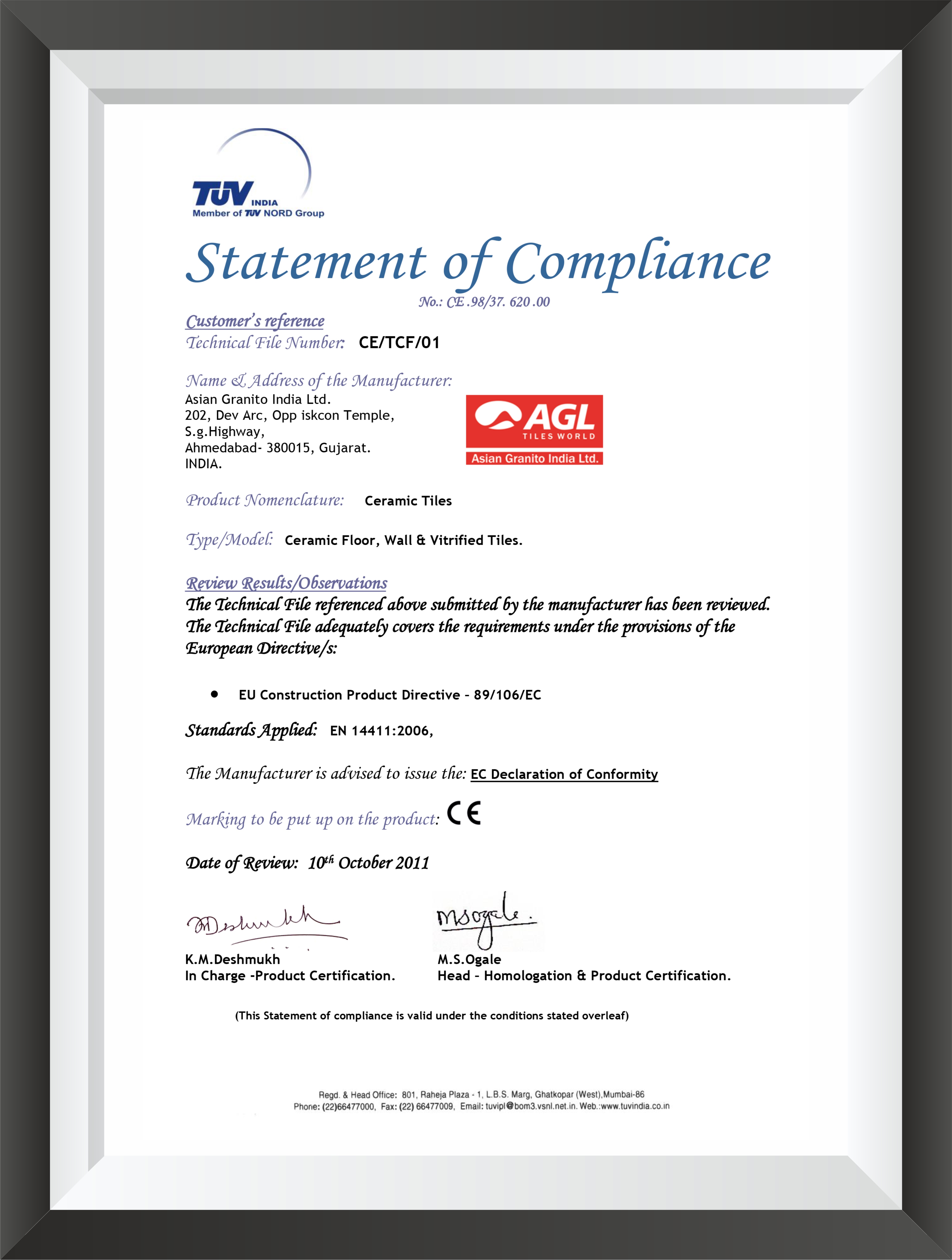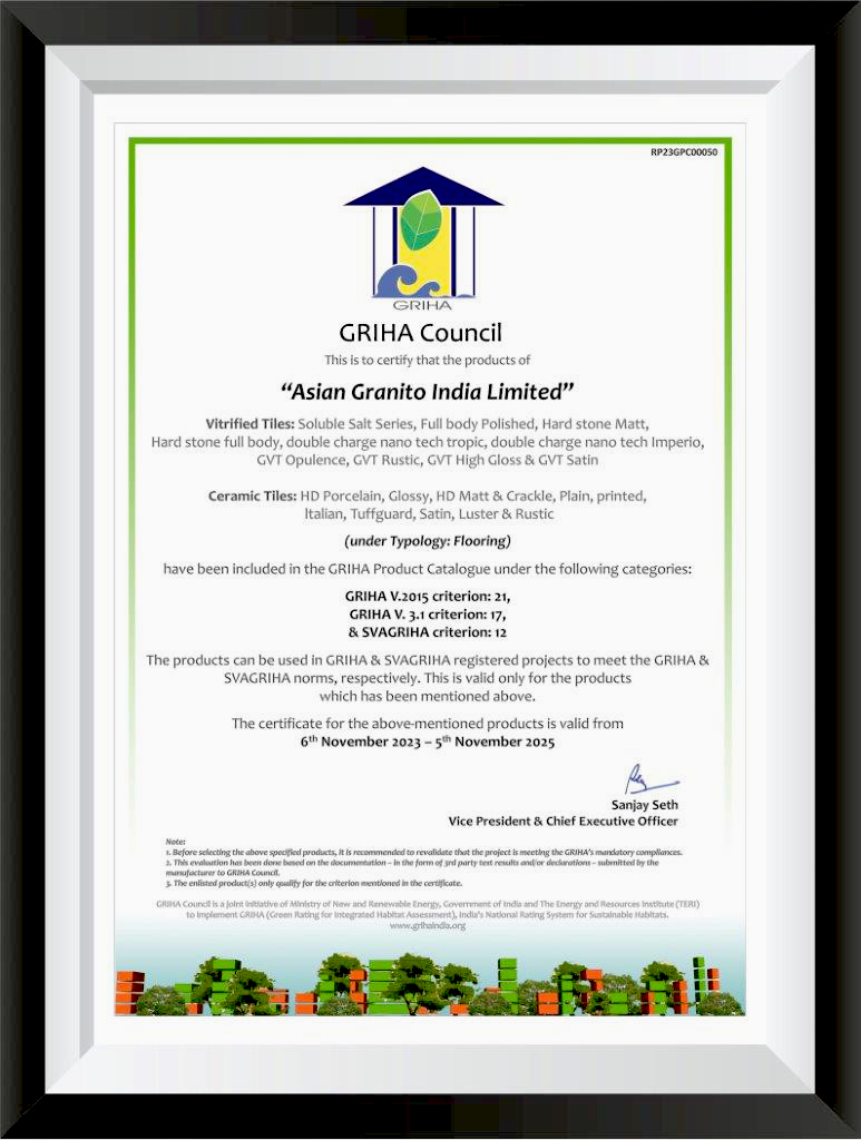 AGL is always setting up the international benchmark to perform and deliver better than the best in whatever we do. Since its inception, Asian Granito India Ltd has received many accolades from the various organizations and governments.