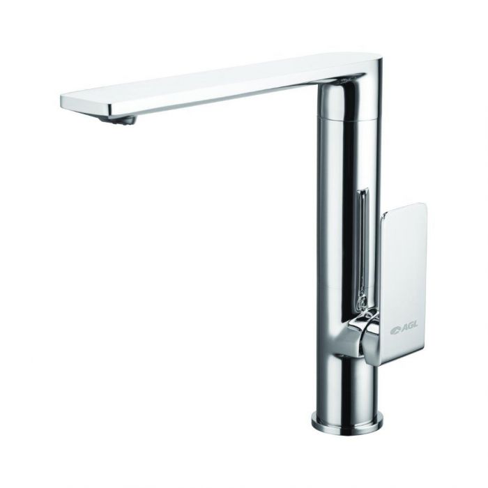 Single lever sink mixer table mounted with long swivel spout and braided hoses