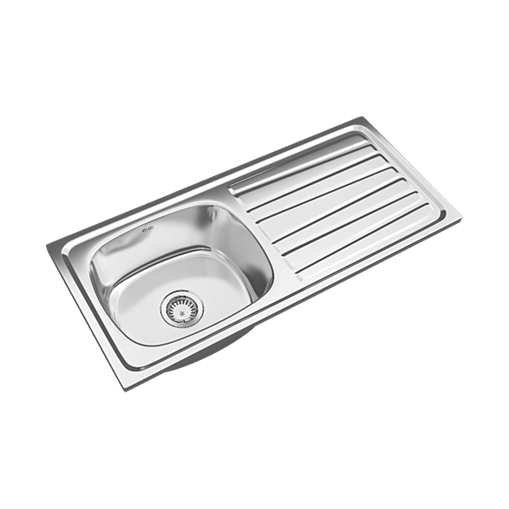 Apex- Kitchen Sink Product Code: KSPS304020 Dimension: 37x18x8 inch Grade: Stainless Steel 204 (2% Nickle) Accessories: Waste Coupling, Top Side Plastic Coating