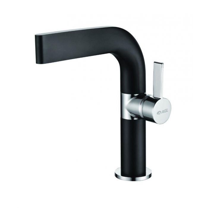 Single lever basin mixer tall body with braided hoses without pop-up waste