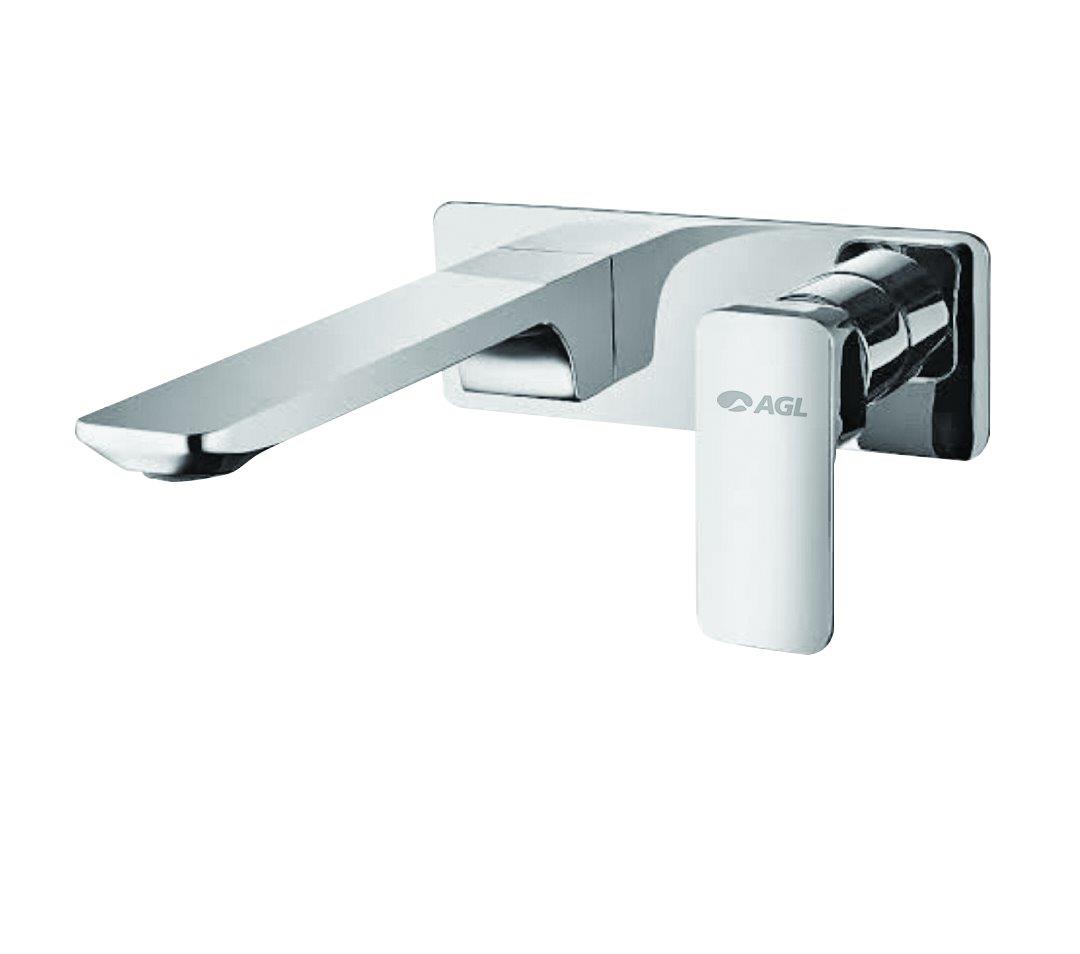 Single lever wall mounted basin spout with operating lever and wall flange (One Piece Body)