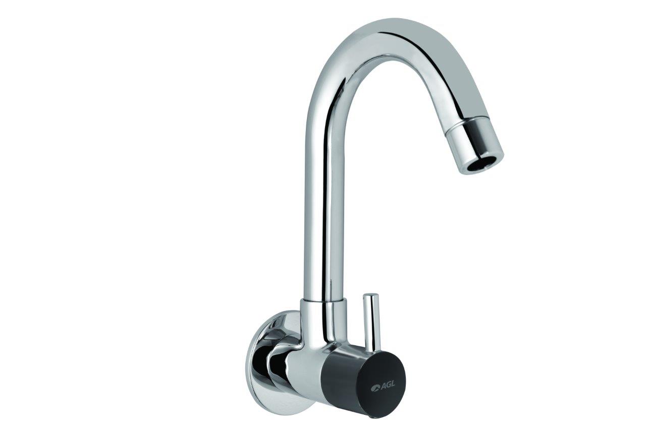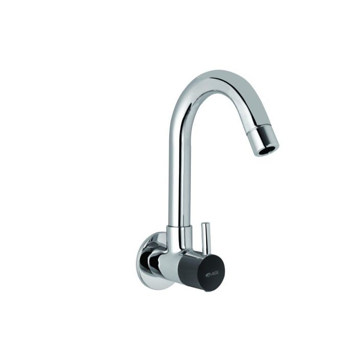 Sink cock (wall mounted) with swivel spout and wall flange