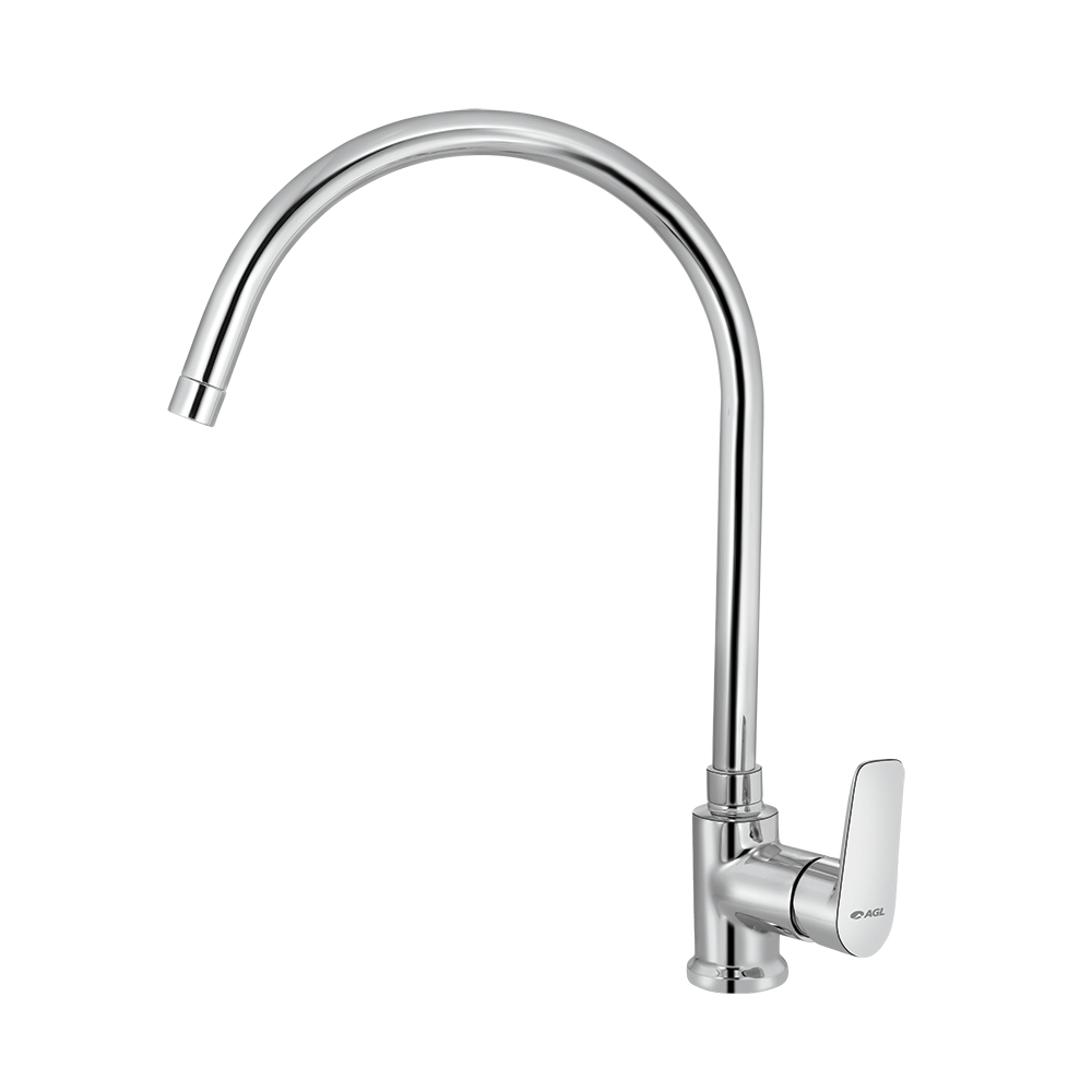 Single lever sink mixer table mounted with long swivel spout and braided hose
